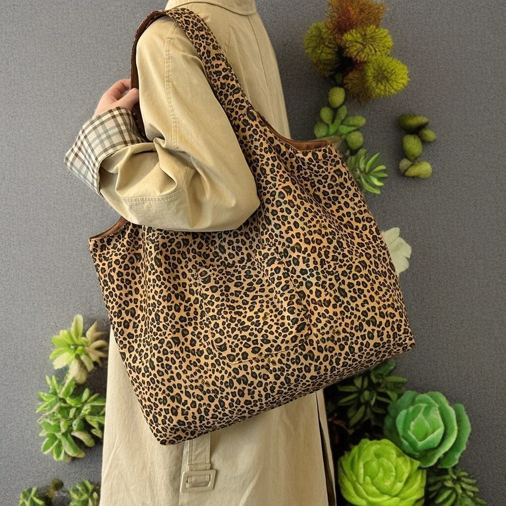حقيبة قماش بطبعة جلد النمر، نمط ريترو، حقيبة كتف قابلة للعكس، حقيبة حمل للنساء.